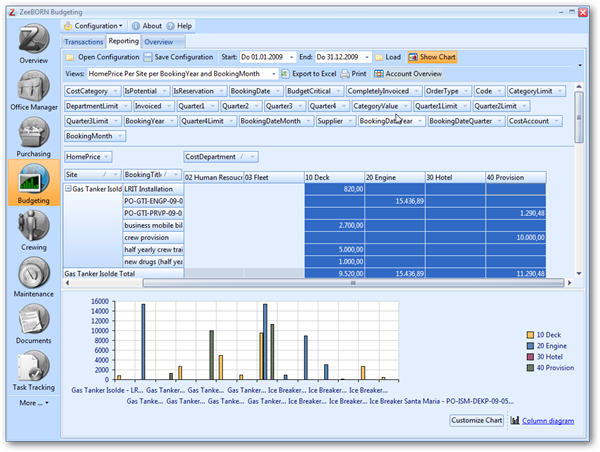 - New: Detailed analysis of all existing data in a pivot grid – use predefined reports or your own reports for analyzing the existing data in any way you want.