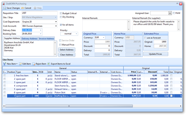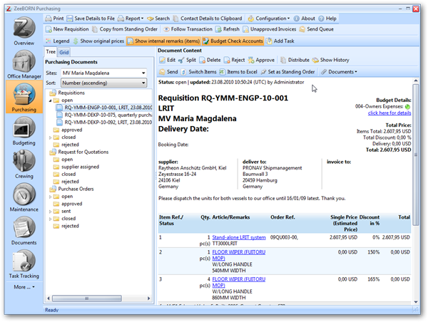 - Catalog module for ordering catalog items (e.g. IMPA catalog etc.)