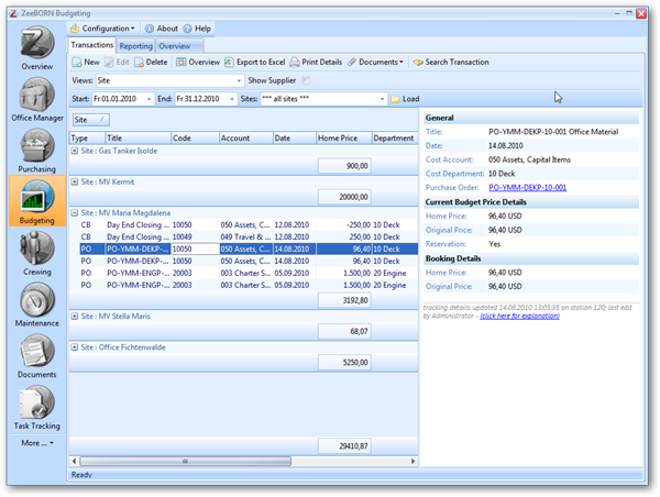 - Manual budget definition or import from external data sources (e.g. accounting system)