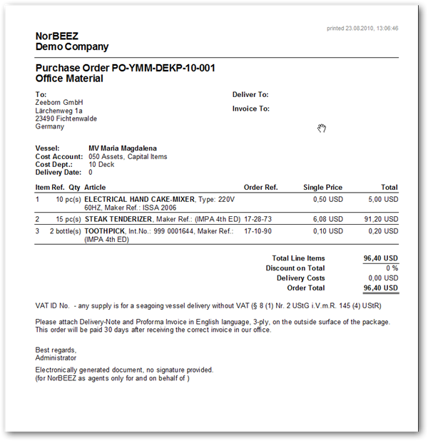 - Catalog module for ordering catalog items (e.g. IMPA catalog etc.)
